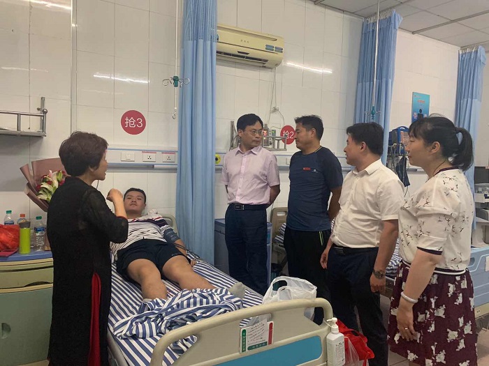 信工系将此事上报院领导后,引起高度重视。当天下午,学院党委书记盛闵贵、学工处负责人、信工系党支部书记及老师一行5人前往医院对住院学生万宇宸进行慰问。