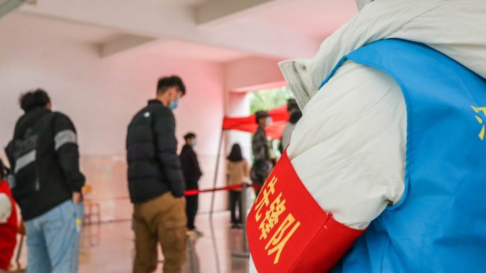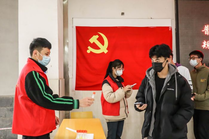 为应对疫情,学院四十余名中层干部及教师积极维持现场秩序,核对学生信息、引导学生有序排队,全力协助做好核酸检测的保障服务工作。七十五名教官队全员坚守、随叫随到。在全院师生核酸检测的过程中,坚守岗位、维持秩序,为学生传递正能量,增强学生们的抗疫信心。三十八名团员青年、学生干部及志愿者在做好自我防护的同时,也踊跃参与到志愿行动中,维护秩序、运送物资、扫码测温……他们用实际行动暖心守护校园,书写了青春担当。而来自江西省儿童医院、江西中医药大学第二附属医院和修水县妇幼保健院的医护人员更是顶着寒风冷雨,站在抗疫最前线,穿着密闭的防护服,严格按照采样流程规范操作,尽心尽责为在校的每位师生进行核酸检测。