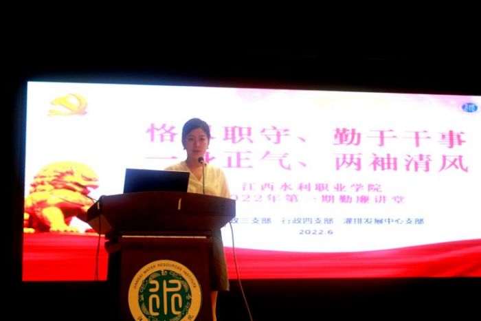 为深入学习贯彻习近平新时代中国特色社会主义思想,学习贯彻党的十九届六中全会、中央纪委六次全会精神,教育引导广大党员增强“四个意识”、坚定“四个自信”、坚决做到“两个维护”,进一步提高对全面从严治党、党风廉政建设的认识,知责于心、担责于身、履责于行,坚持不懈涵养勤廉校园政治生态。6月10日上午,以“恪尽职守、勤于干事、一身正气、两袖清风”为主题的学院2022年第一期“勤廉讲堂”活动在培训中心大礼堂召开。此次活动由灌排发展中心支部、行政三支部和行政四支部联合组织,全体在职党员及中层干部共130余人参加,行政三支部汪璐主持。