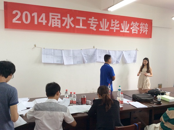 当天下午,张颖老师还应邀参与了在逸夫实验楼A307举行的2014届水工毕业答辩。此次答辩采用公开答辩的方式,分个人陈述和回答问题两个环节。整个答辩过程严谨有序,答辩委员们认真负责,针对学生的叙述和论文内容进行提问,对每篇论文中所存在的结构、内容、格式、注释等方面问题逐一进行了细致点评并给出了具体的修改建议。通过认真聆听、亲自参与提问学生,学习到了教育教学管理方法,认识到了既要注重基础教学,又要加强过程管理,才能提高人才管理效率,提升人才培养质量。