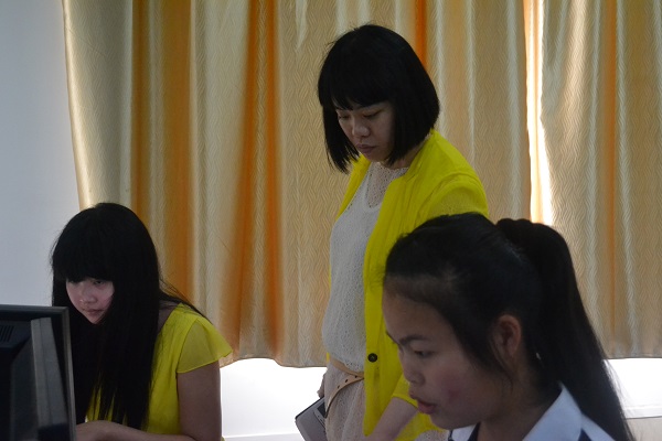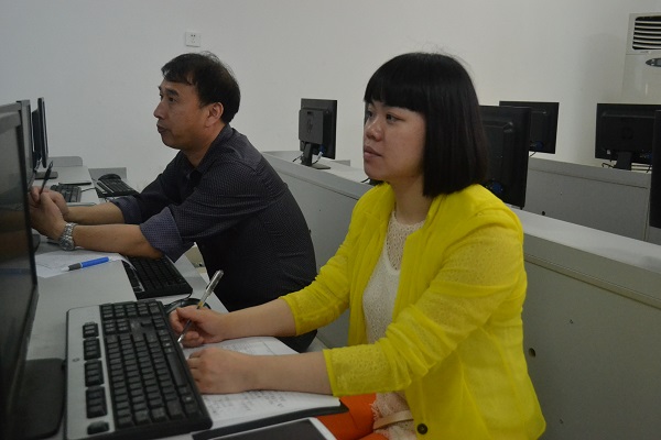 章慧云和尹学勇在机房认真听课